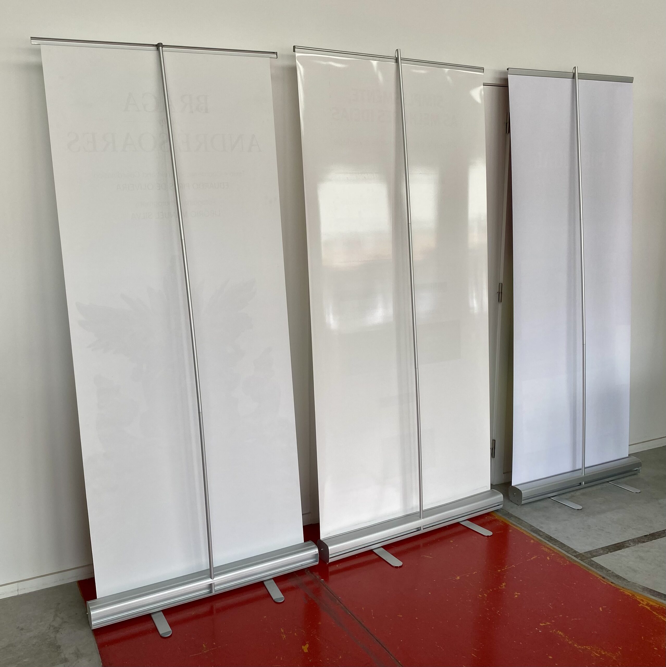 3 Estruturas de Roll-Up publicitário (90cm, 85cm e 1 metro; por 2 metros de altura)